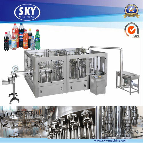 1.This kind of complete set of gas drink filling machine combines washing,filling and rotary capping functions in one unit,is a fully automatic and high efficiency liquid packing equipment.